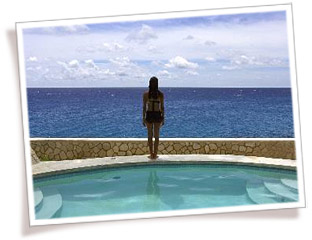 "Outside, torquoise water laps languidly against rocky cliffs, recalling the Caribbean before high tech hotels vanquished the landscape and personal watercraft disturbed the calm."